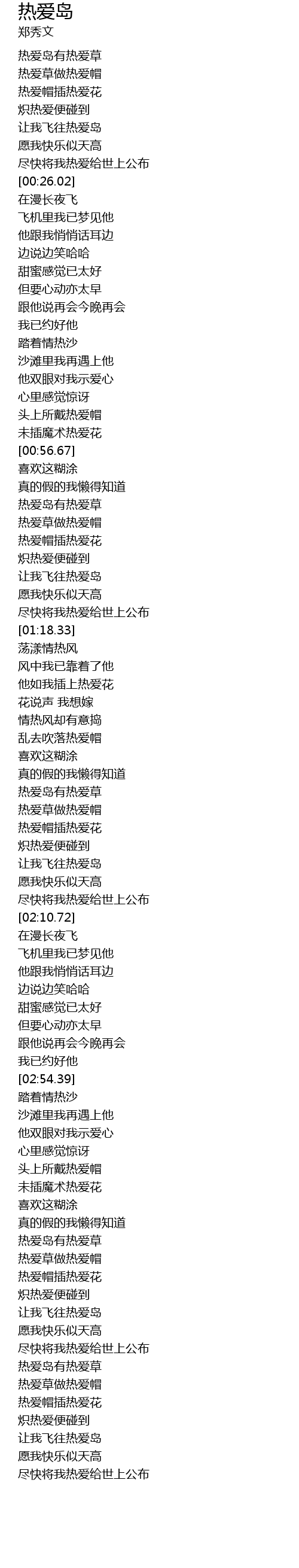 | [00:17.51] | 让我飞往热爱岛 |