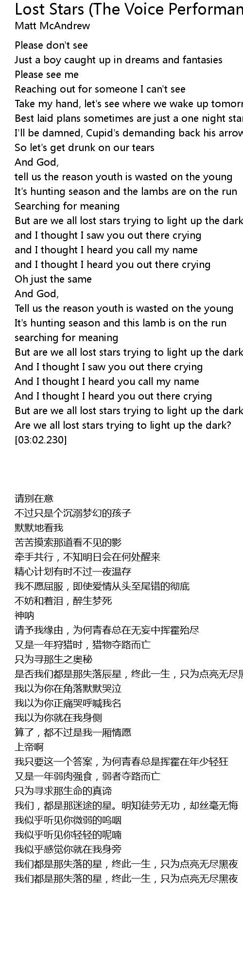 But are we all lost stars trying to light up the dark? |