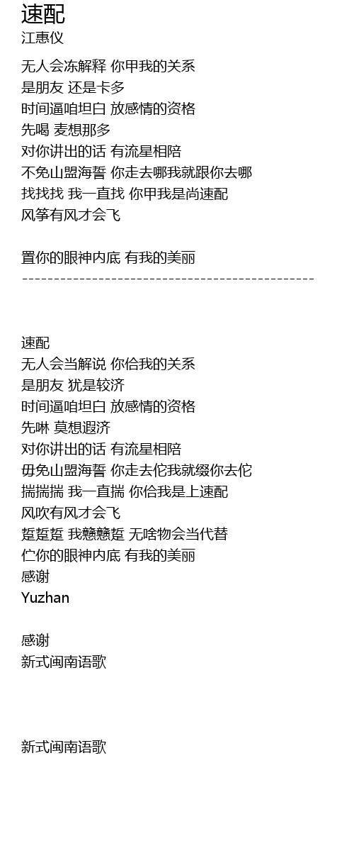 | 揣揣揣 我一直揣 你佮我是上速配 | |