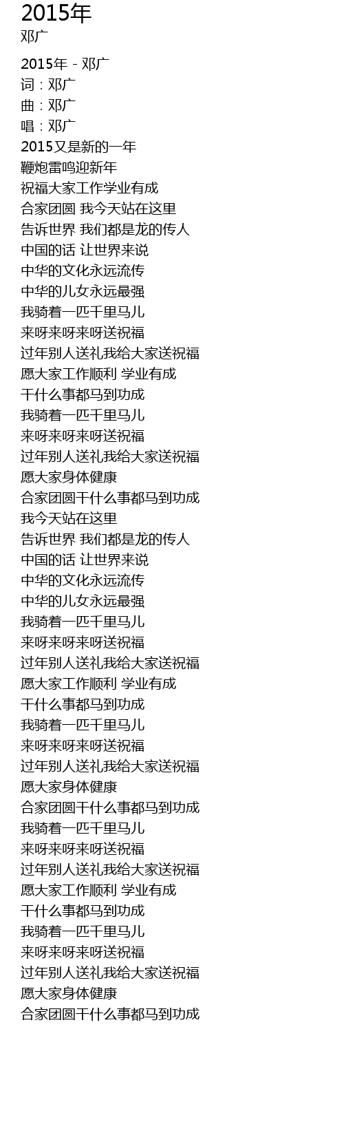 | [00:10.63] | 2015 yòu shì xīn de yī nián |