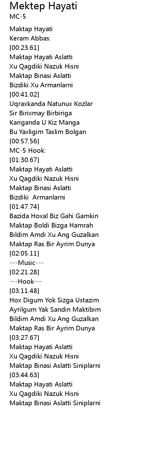 | [03:36.61] | Maktap Binasi Aslatti Siniplarni |