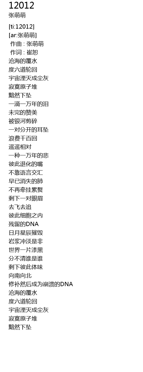 | [00:00.00] | 作曲 : 张萌萌 |