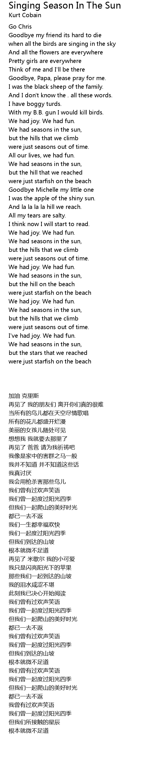 We had seasons in the sun, |