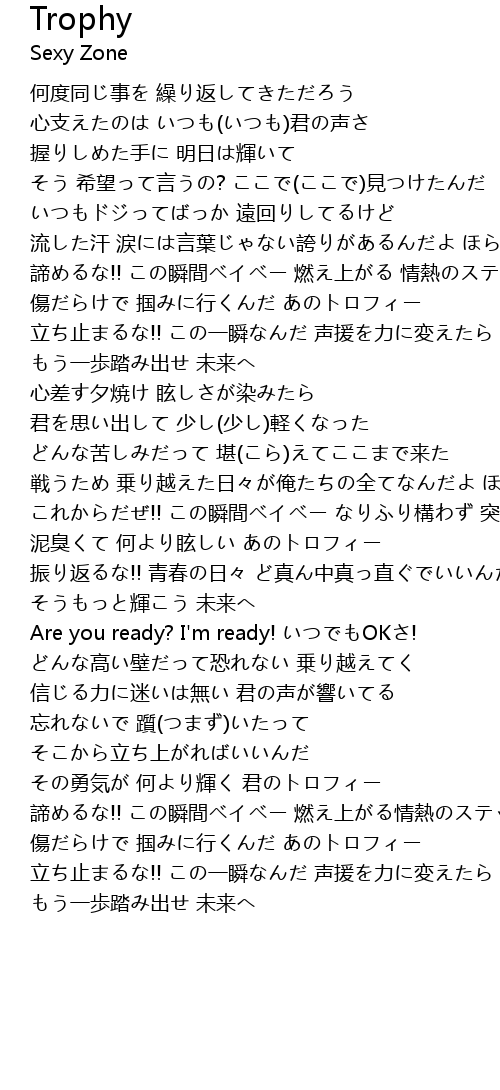 | 傷だらけで 掴みに行くんだ あのトロフィー | |