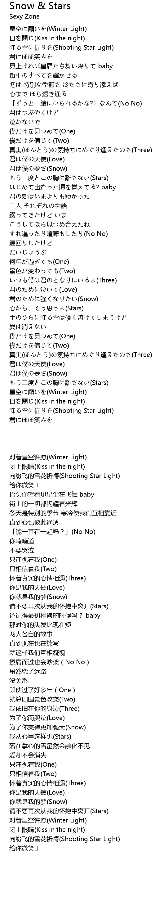 | [00:07.00] | 星空に願いを(Winter Light) |