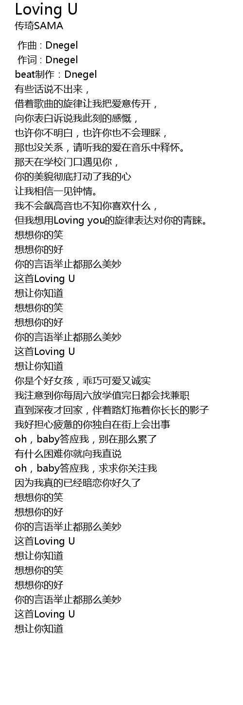 | [00:56.33] | dàn wǒ xiǎng yòng Loving you de xuán lǜ biǎo dá duì nǐ de qīng lài. |