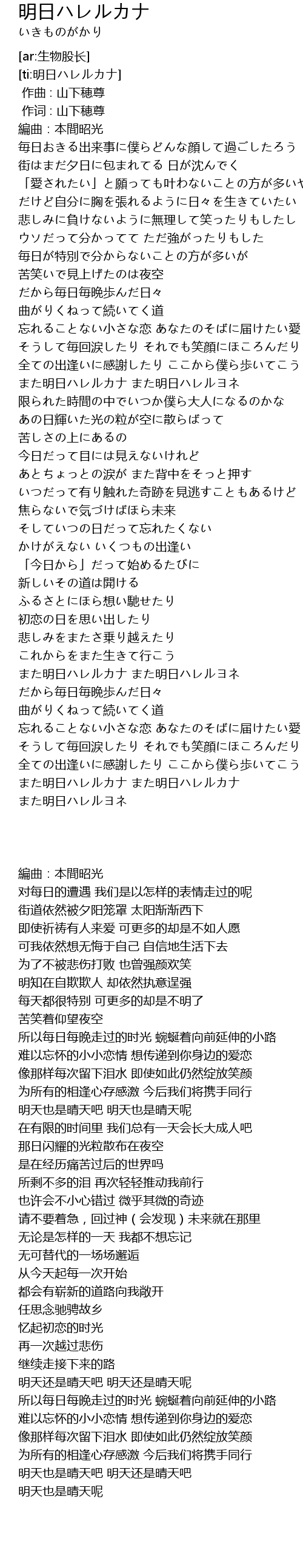 | [ti:明日ハレルカナ] | |