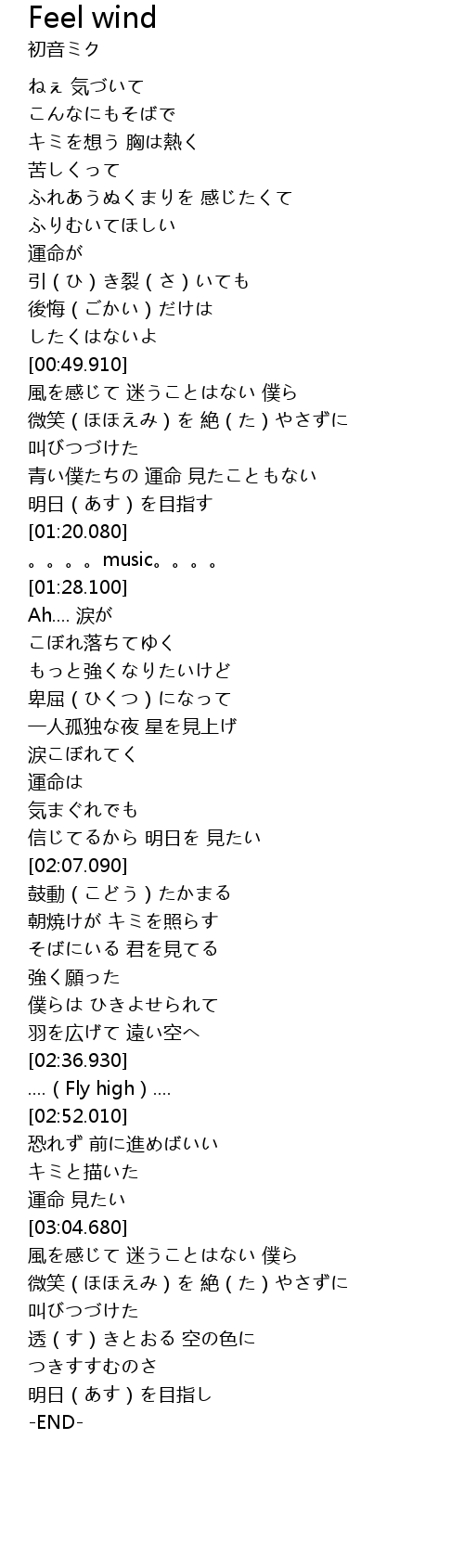 | [00:51.210] | 風を感じて 迷うことはない 僕ら |