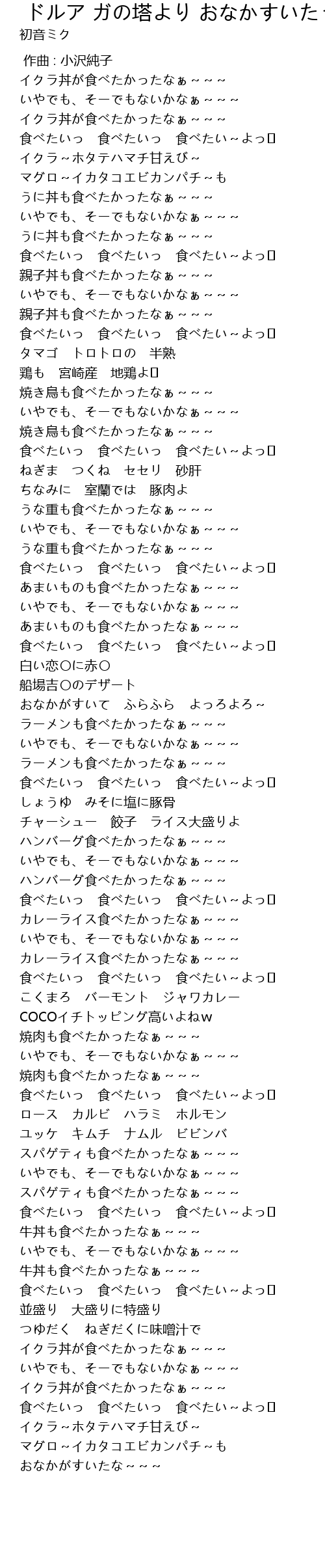 | [01:15.000] | 食べたいっ 食べたいっ 食べたい~よっ♪ |