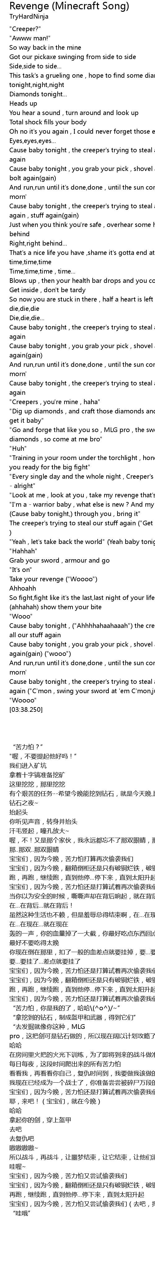 Cause baby tonight , the creeper's trying to steal all our stuff again ("C'mon , swing your sword at 'em C'mon,just show 'em all") |