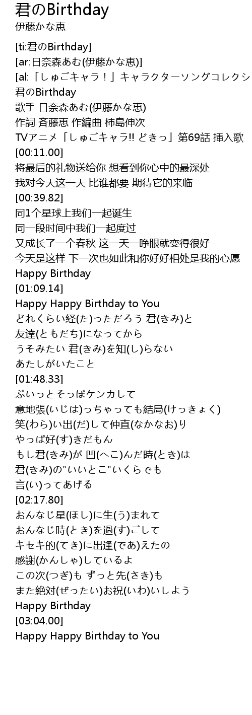 | [ti:君のBirthday] | |