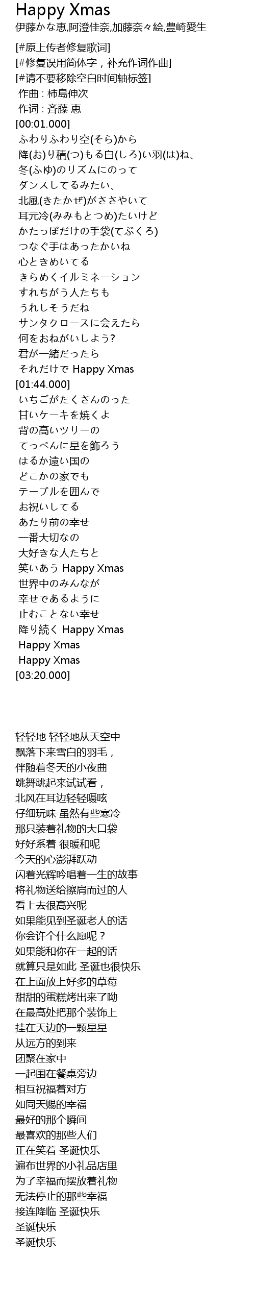 | [03:04.144] | jiàng xu Happy Xmas |
