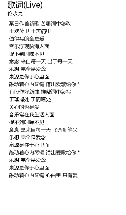 | Song | 歌词(Live) |