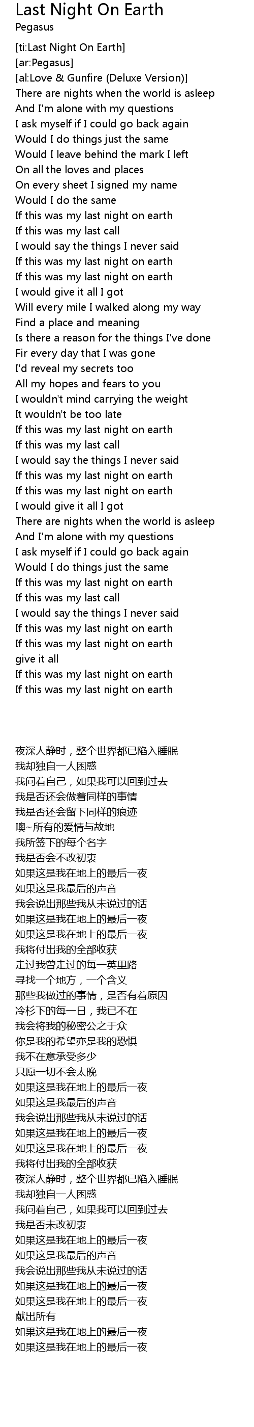 [ti:Last Night On Earth] |