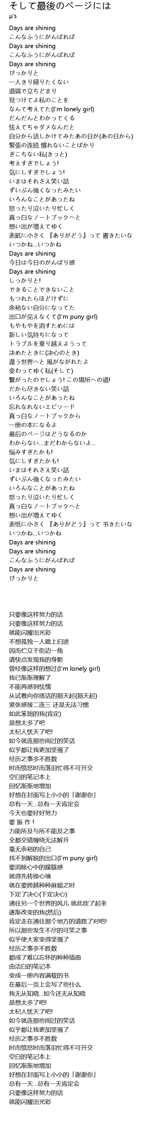 | [01:32.450] | 表紙に小さく 『ありがどう』って 書きたいな |