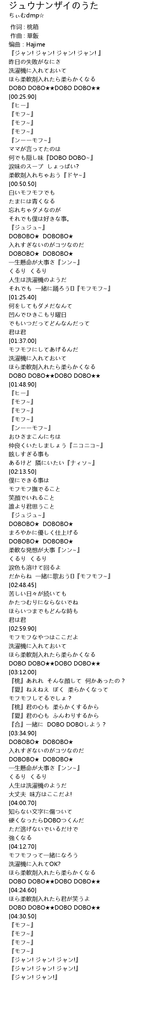 | [03:06.37] | ほら柔軟剤入れたら柔らかくなる |