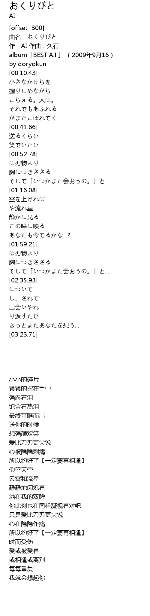 | [00:06.41] | album BEST A. I. 2009 nian 9 yue 16 |