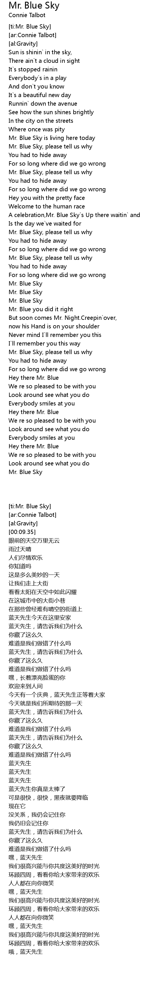 A celebration,Mr. Blue Sky`s Up there waitin` and today |