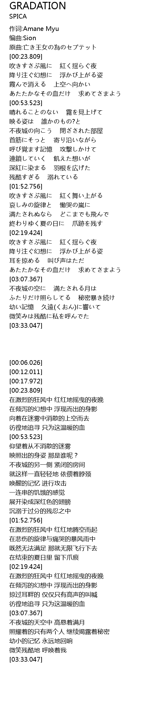 | [00:29.456] | 吹きすさぶ風に 紅く揺らぐ夜 |