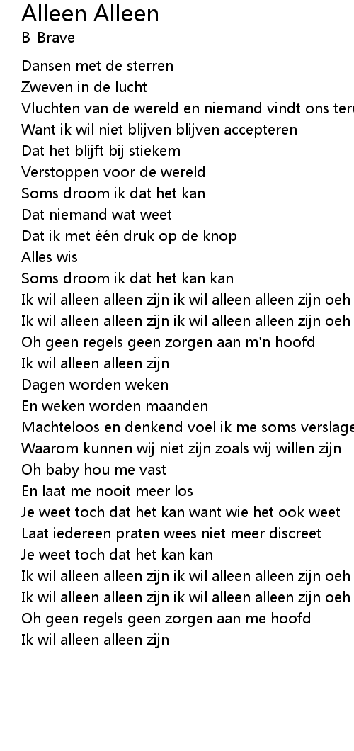 | [00:34.05] | Ik wil alleen alleen zijn ik wil alleen alleen zijn oeh |