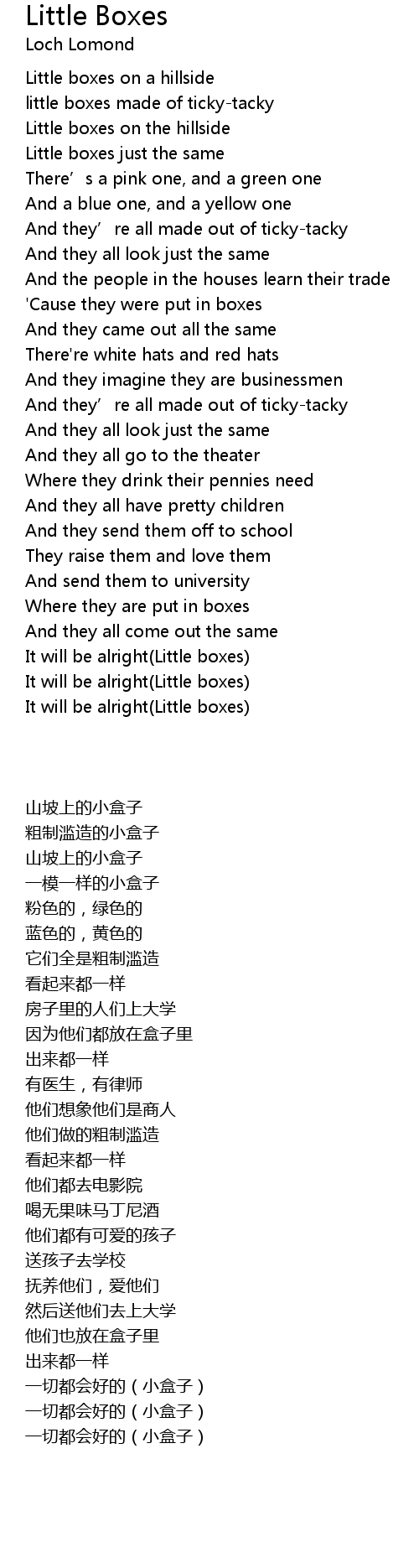 | [00:46.48] | And they’re all made out of ticky-tacky |