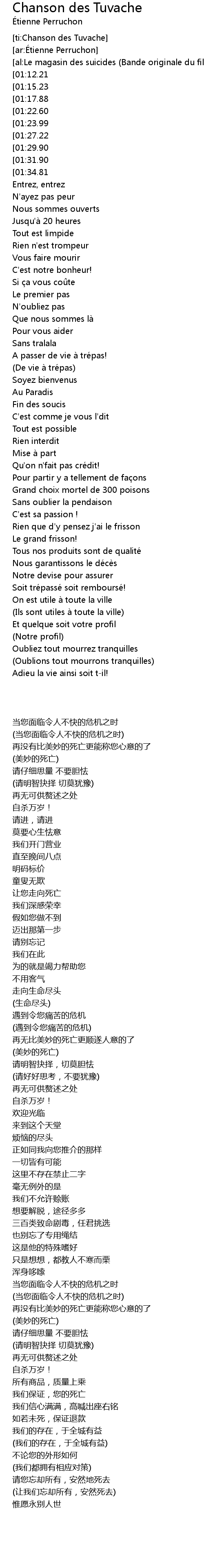 | [00:38.02][01:31.90][02:28.90] | Vive le suicide! |
