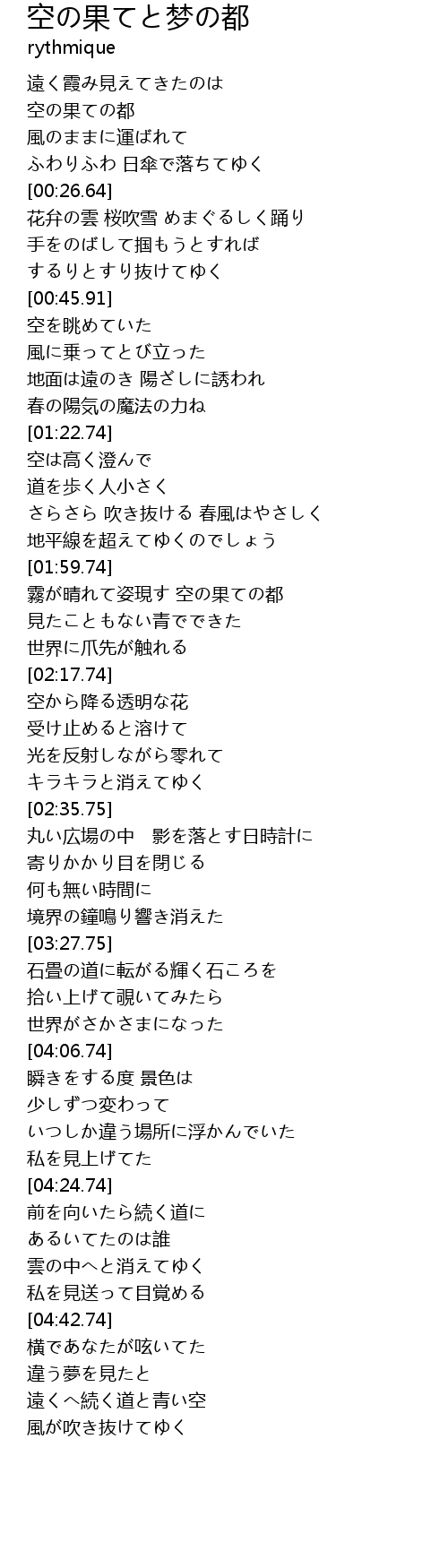 | [01:59.75] | 霧が晴れて姿現す 空の果ての都 |