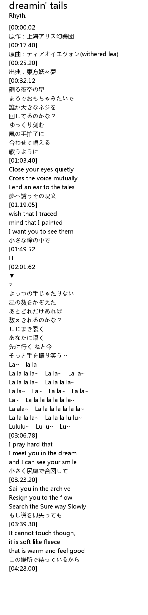 | [00:17.42] | 原曲:ティアオイエツォン(withered lea) |