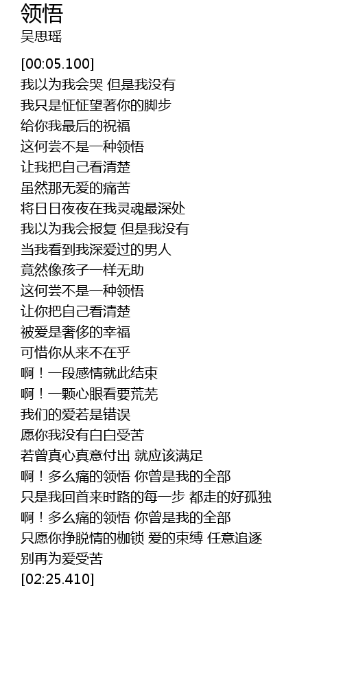 | Song | 领悟 |