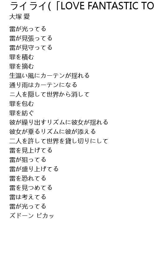 | Song | ライライ(「LOVE FANTASTIC TOUR 2014~おぉーつかあいはまほぉーつかぁい~」) |