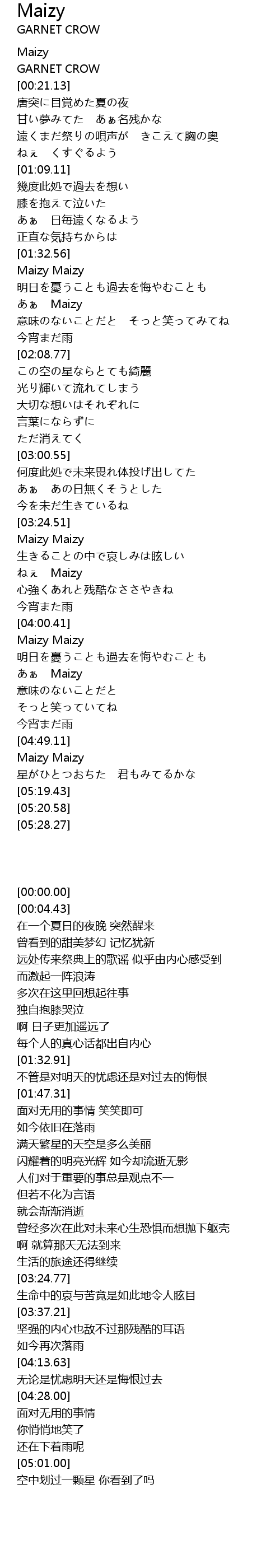 | [04:28.00] | あぁ Maizy |