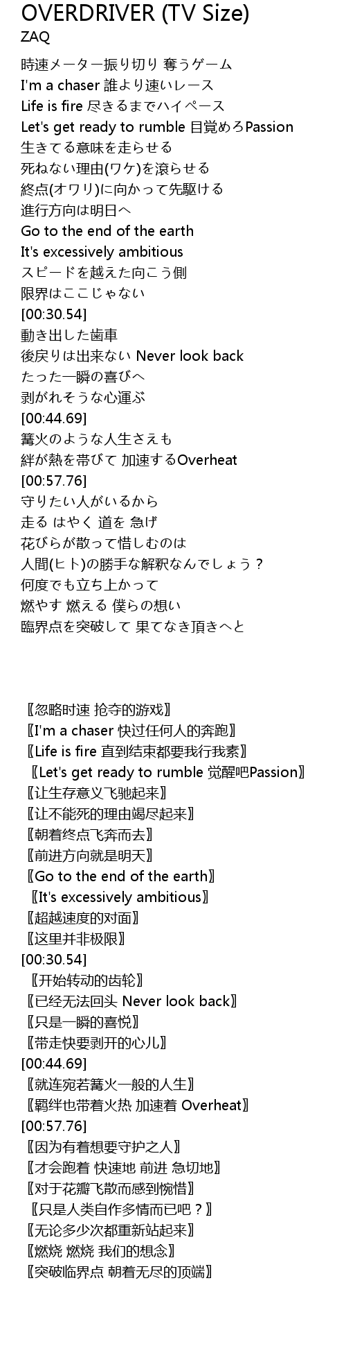 | [00:06.34] | I'm a chaser 誰より速いレース |
