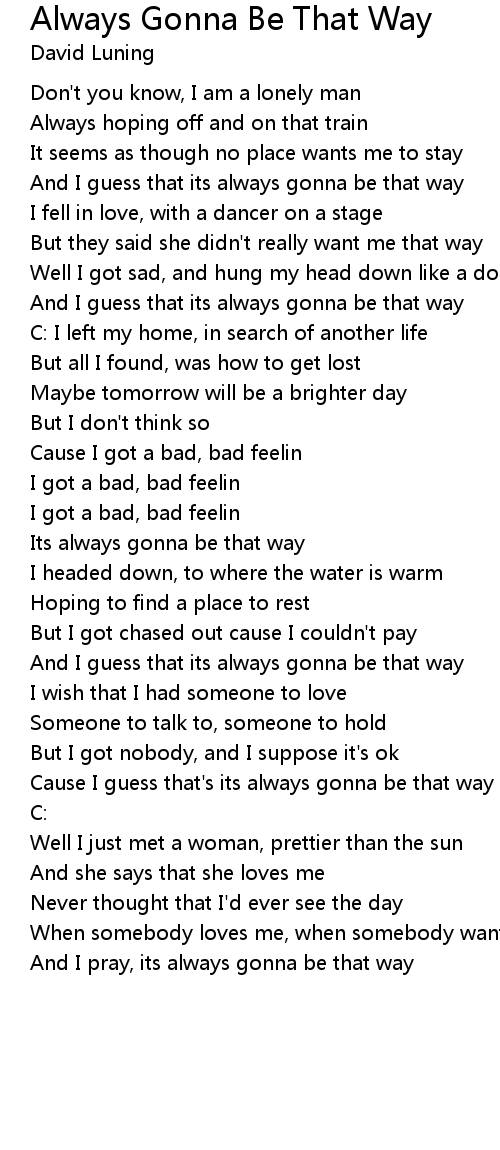Its always gonna be that way |