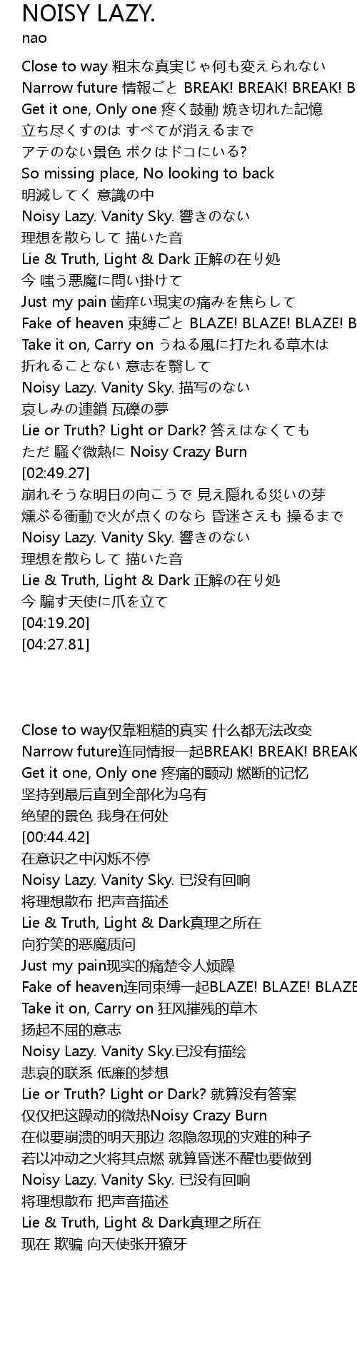 | [01:53.12] | Noisy Lazy. Vanity Sky. miáo xiě |