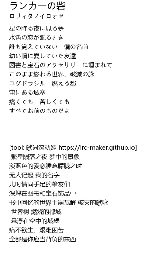 | [01:04.111] | このまま終わる世界、破滅の詠 |