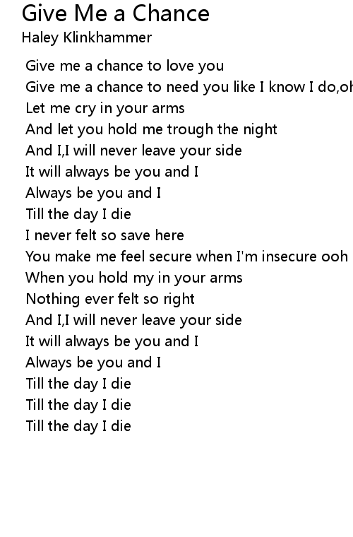 Give me a chance to love you |