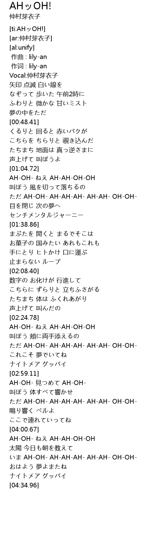 | [04:15.90] | いま AH-OH- AH-AH-AH- AH-AH- OH-OH- |
