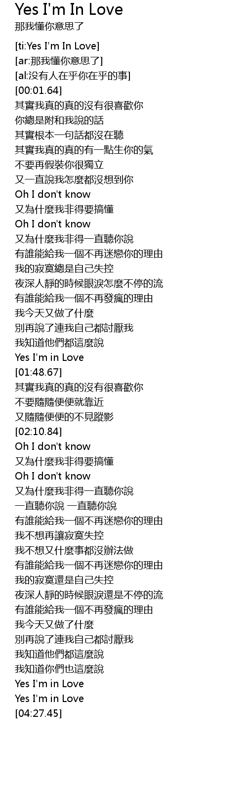 | [04:23.56] | Yes I'm in Love |