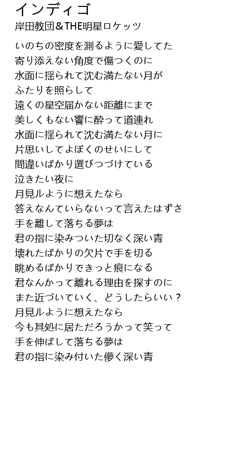 | Song | インディゴ |