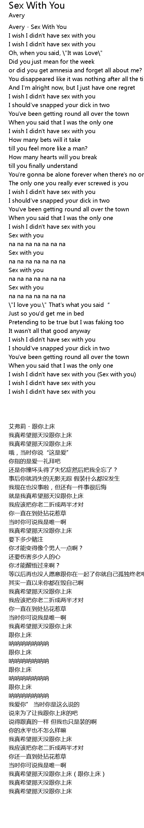 | [02:33.90] | I wish I didn't have sex with you (Sex with you) |