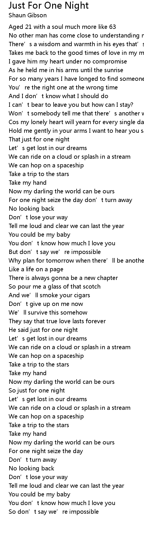 | [01:13.81] | Hold me gently in your arms I want to hear you say |