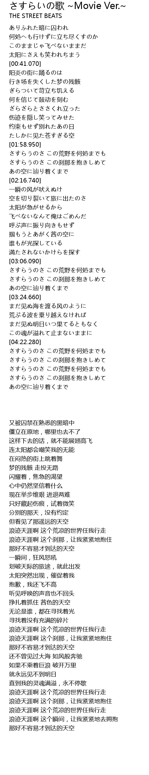 | [04:23.040] | さすらうのさ この荒野を何処までも |