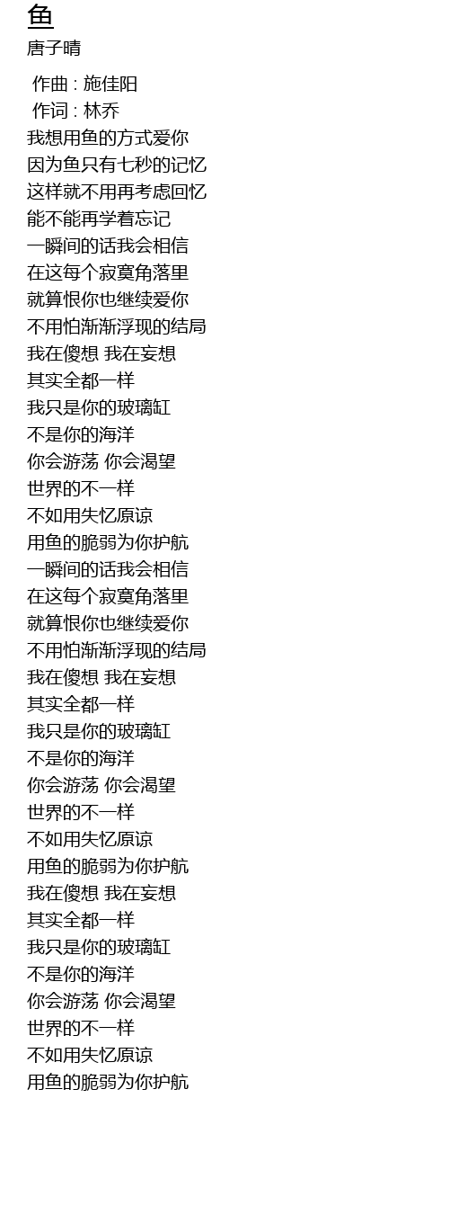 | [00:16.48] | 我想用鱼的方式爱你 |