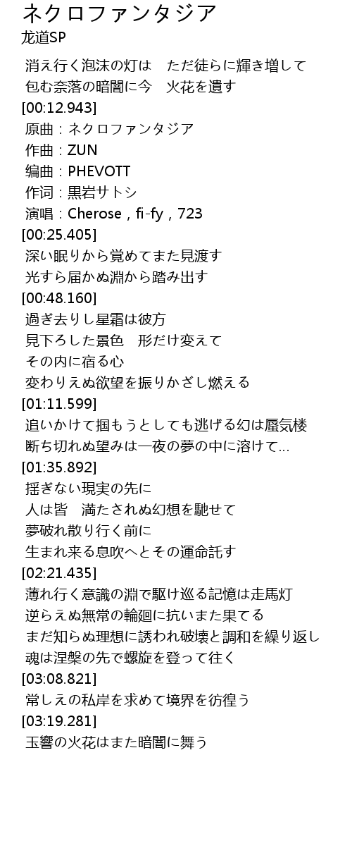 | [00:14.070] | 原曲:ネクロファンタジア |