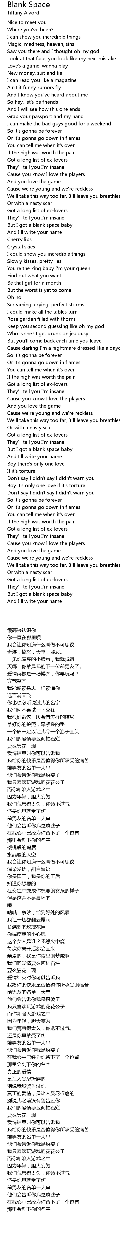 But I got a blank space baby |