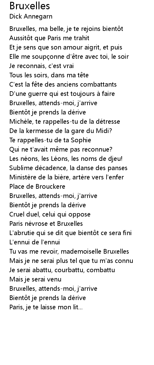 | Bruxelles, ma belle, je te rejoins bient t | |