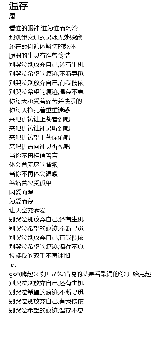 | [03:00.289] | 别哭泣别放弃自己,还有生机 |