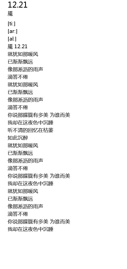 | [01:18.63] | 听不清的回忆在枯萎 |