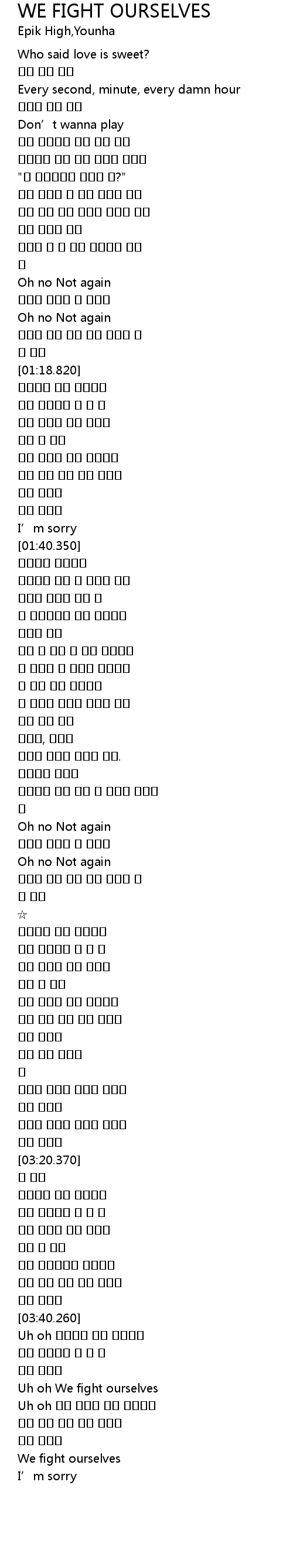 | [03:20.500] | 또 싸워 |