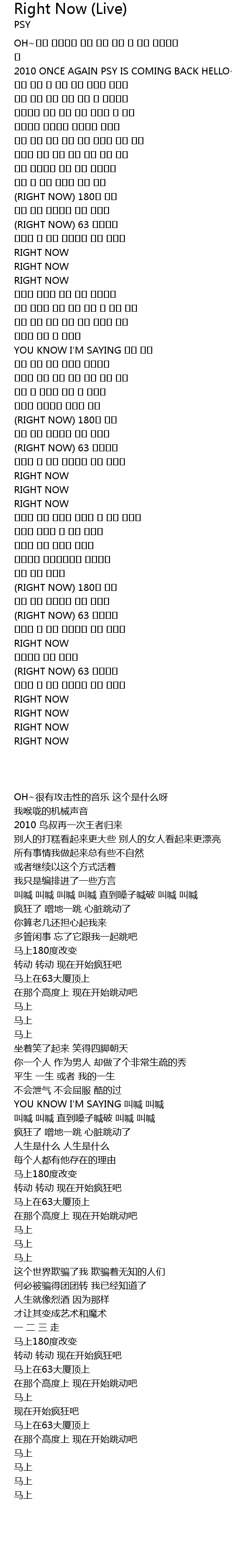 | [00:19.87] | 2010 ONCE AGAIN PSY IS COMING BACK HELLO~ |